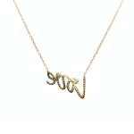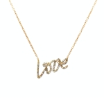 18K Yellow Gold Script Love Pendant Necklace with 0.22ct Natural Diamonds