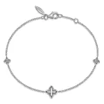 > 925 Sterling Silver White Sapphire Clover Station Bracelet, 7.5"