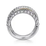 925 Sterling Silver and 14K Yellow Gold White Sapphire Wide Band Ring-Bujukan, Size 6.5