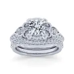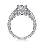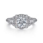 Abel - Vintage Inspired 14K White Gold Fancy Halo Round Engagement Ring with 0.10ct Side Natural Diamond & 1.00ct Cubic Zirconia Center tone, Size 6.5