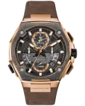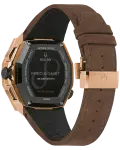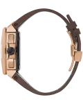 Marking the 10th anniversary of the Precisionist movement, the Series X Special Edition is a celebration of unparalleled accuracy. The special edition timepiece features a distinctive rose gold-tone stainless steel case with a gray Damascus steel top ring insert. The black dial features a calendar window and a view into the proprietary Precisionist eight-hand chronograph high-precision quartz movement. The fine brown leather strap is complete with a deployant buckle. The case features a curved sapphire crystal with AR coating, screw down case back, and water resistance to 50 meters.