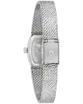 Step back in time to the glitz and glam of the 1970s with the Bulova women’s Classic “Goddess of Time” watch. Borrowing the timeless design of vintage Bulova “Goddess of Time” watches, the silver-tone stainless steel tonneau case has a textured top and a brightly polished bezel, seamlessly transitioning to a textured mesh bracelet seamlessly transitioning to a textured mesh bracelet with a sliding clasp closure that adjusts from 6″ to 7 ¾″.?Each variegated genuine blue sodalite stone dial is completely unique and is appointed with silver-tone applied markers and matching hands, while Bulova’s Goddess of Time herself is etched onto the case back in intricate definition. Feel truly divine in this stunning Bulova ladies’ timepiece.