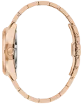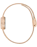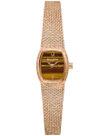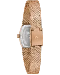 Step back in time to the glitz and glam of the 1970s with the Bulova women’s Classic “Goddess of Time” watch. Borrowing the timeless design of vintage Bulova “Goddess of Time” watches, the rose gold-tone stainless steel tonneau case has a textured top and a brightly polished bezel, seamlessly transitioning to a textured mesh bracelet with a sliding clasp closure that adjusts from 6″ to 7 ¾″.?Each striated brown genuine tiger eye dial is completely unique and is appointed with rose gold-tone applied markers and matching hands, while Bulova’s Goddess of Time herself is etched onto the case back in intricate definition. Feel truly divine in this stunning Bulova ladies’ timepiece.