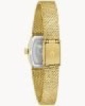 Step back in time to the glitz and glam of the 1970s with the Bulova women’s Classic “Goddess of Time” watch. Borrowing the timeless design of vintage Bulova “Goddess of Time” watches, the gold-tone stainless steel tonneau case has a textured top and a brightly polished bezel, seamlessly transitioning to a textured mesh bracelet with a sliding clasp closure that adjusts from 6″ to 7 ¾″.?Each striated green genuine malachite dial is completely unique and is appointed with gold-tone applied markers and matching hands, while Bulova’s Goddess of Time herself is etched onto the case back in intricate definition. Feel truly divine in this stunning Bulova ladies’ timepiece.