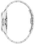Defined by exceptional quality and sophisticated aesthetics, the Bulova men’s Surveyor is the quintessential modern timepiece. Sculpted edges and faceting distinguish the silver-tone stainless steel case, with polished and brushed finishing, a flat sapphire crystal, and a 3-link stainless steel bracelet with a push-button deployant clasp with easy-release latched spring bars. The radiant light blue dial has a sunburst finish and silver-tone accents, hands with luminescent fill, cutout minute markers, a magnified date display, and a recessed minute track. The watch is powered by an automatic movement with 21-jewels and a 42-hour power reserve, which can be seen through an exhibition window on the case back. For those with a discerning eye for refined luxury, this Bulova men’s timepiece is the obvious choice.