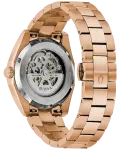 Defined by exceptional quality and sophisticated aesthetics, the Bulova men’s Surveyor is the quintessential modern timepiece. Sculpted edges and faceting distinguish the rose gold-tone stainless steel case, which provides an effortless wear on the wrist, with polished and brushed finishing, a flat sapphire crystal, and a 3-link rose gold-tone stainless steel bracelet with a push-button deployant clasp and easy-release latched spring bars. The captivating aubergine dial has a sunray finish, and features rose gold-tone accents, hands with luminescent fill, cutout minute markers, a magnified date display, and a recessed minute track. The watch is powered by an automatic movement with 21-jewels and a 42-hour power reserve, which can be seen through an exhibition window on the case back. For those with a discerning eye for refined luxury, this Bulova men’s timepiece is the obvious choice.