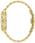 Drawing inspiration from the incredible Bulova Super Seville Day-Date from the 1970s, the new Super Seville merges retro aesthetics with state-of-the-art Precisionist technology for a timeless modern appeal. The gold-tone stainless steel 38mm case has the versatility to be worn by most anyone and makes a bold statement with a seamless silhouette created by the retro TV-shaped case transitioning into the integrated 3-link stainless steel bracelet, which features a secure and convenient push-button deployant clasp. An elegant, grooved coin edge bezel enhances the case and surrounds the flat sapphire crystal and its date magnifier. The sophisticated vertical brushed dial is silver-white with polished hands and indices and a date situated perfectly at 3 o’clock. The new Super Seville is powered by our proprietary high precision quartz Precisionist movement, a revolutionary 8-jewel quartz mechanism vibrating at a remarkable 262kHz, accurate to seconds per year with increased resistance to temperature changes, and with a smooth sweeping second hand. Embrace an effortless kind of elegance with the men’s Bulova Super Seville.