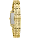 This all-new Bulova women’s timepiece brings a luxurious elegance to the already impressive Sutton Collection. The refined gold-tone stainless steel rectangular case features a mineral crystal and finishing that shines brilliantly in the light. The lustrous mother-of-pearl dial is accented with gold-tone Roman numeral markers and hands for a look of true elegance. A matching five-link gold-tone stainless steel bracelet features a deployant closure with pushers for a perfect fit and latched spring bars for easy release. This Bulova ladies’ timepiece offers an understated sense of luxury for the woman with an elevated sense of style.