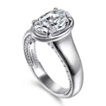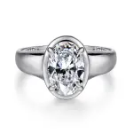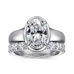 Ettie - 14K White Gold Bezel Prong Oval Diamond Engagement Ring with Cubic Zirconia Center Stone & 0.35ct Natural Diamonds, Size 6.5