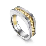 > GABRIEL 14K Yellow-White Gold Angular Ring in Satin Finish, Size 10