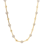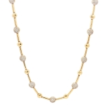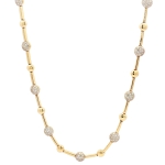 Elevate your elegance with the IDD 14K Yellow Gold Necklace, a stunning blend of luxury and sustainability. This exquisite piece features a 1 CTW natural diamond, meticulously set to dazzle with every movement. The 18-inch adjustable chain ensures a perfect fit for any neckline, making it a versatile addition to your jewelry collection. Crafted from radiant 14K yellow gold, the necklace exudes timeless sophistication. Ideal for special occasions or as a cherished gift, its unique design showcases alternating gold bars and diamond-studded spheres, creating a captivating visual appeal. Indulge in the allure of fine craftsmanship and let this necklace be the crowning jewel of your ensemble.