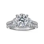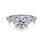 Lotus - Engagement Ring with Cubic Zirconia Center & 0.43ct Diamond Side Stones, Size 6.5