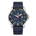 The Navy SEAL Steel RSC series is manufactured using three materials: Rubber, Steel and CARBONOX™ (RSC). A 316L Stainless steel iconic turtle shape case is designed to protect the crown. A CARBONOX™ uni-directional rotating bezel is a divers essential and a double security gasket further ensures water resistance and overall performance. A deep blue rubber strap matches a blue dial with white indices and hands, along with the red second hand is easily legible. Luminox Light Technology ensures at-a-glance visibility.