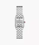 Inspired by the geometric shapes of Art Deco architecture, the Deco Mid timepiece embodies clean, sophisticated style. The mother-of-pearl dial is adorned with diamond hour markings and the signature MICHELE crown accent this stunning timepiece. The stainless bracelet is interchangeable with any 16mm MICHELE strap.