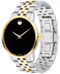 It's time you owned a masterpiece. The Movado Museum classic is an icon of modern design, featured in Museums worldwide and renown for the elegant simplicity of the dial defined by a single dot at 12 o'clock, a design element that symbolizes the sun at high noon. Style #607810