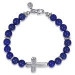 Sterling Silver and 8mm Lapis Beaded Bracelet with Cross, 8"