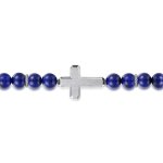 > Sterling Silver and 8mm Lapis Beaded Bracelet with Cross, 8"