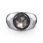 > Wide 925 Sterling Silver Signet Ring with Black Mother of Pearl Stone in High Polished Finish, Size 10