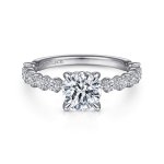 Zelmira - 14K White Gold Round Engagement Ring with Diamond 0.57ct Side Natural Diamonds & 1.00ct Cubic Zirconia Center Stone, Size 6.5
